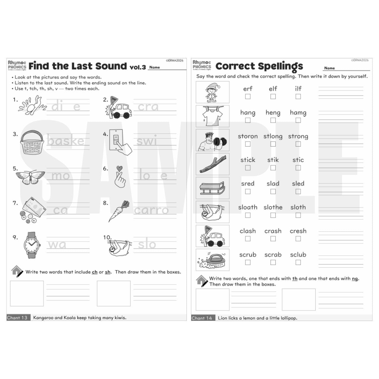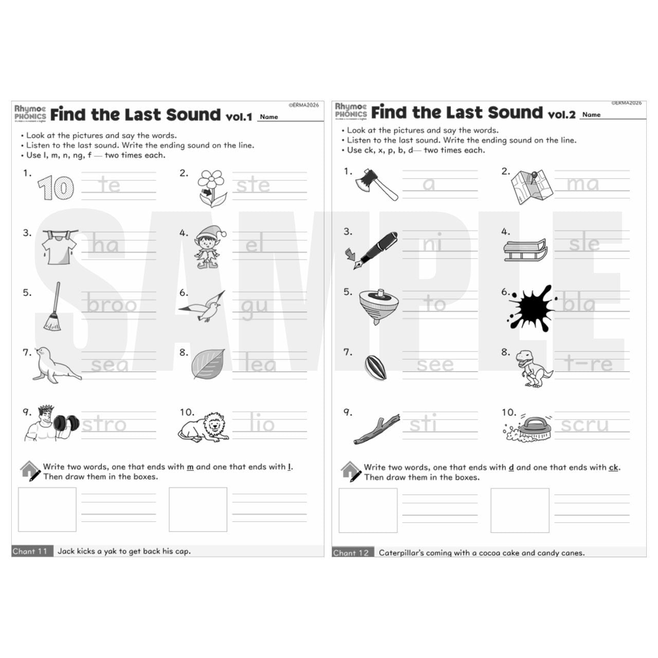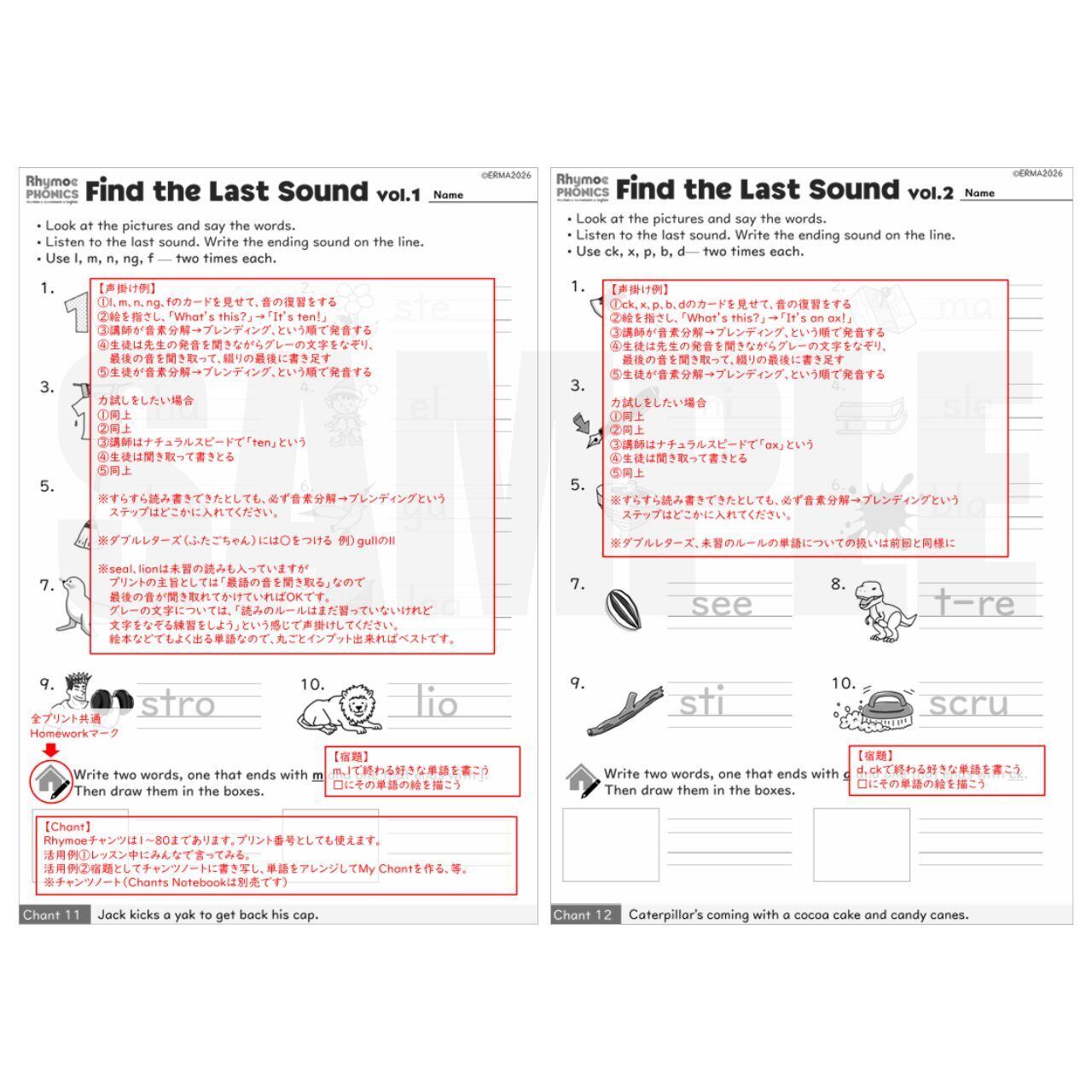• Find the Last Sound (vol.1-3): 単語の最後の音を聞き取り、綴りを完成させる練習
